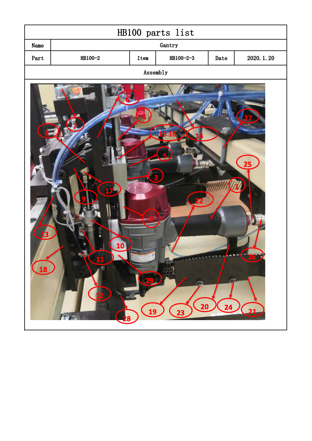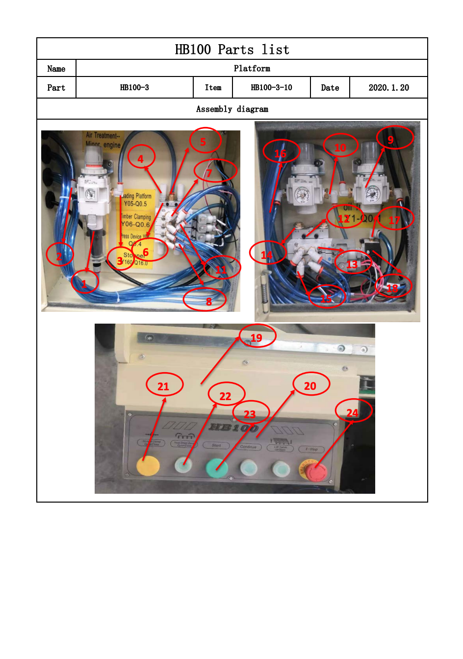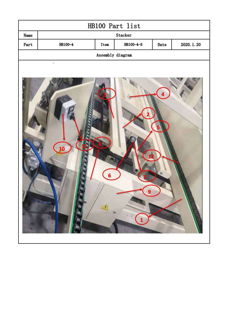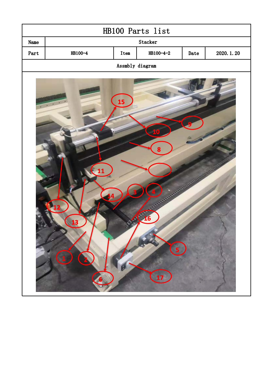 This document provides a detailed list of parts for Honey Badger pallet machine models manufactured before 2023.