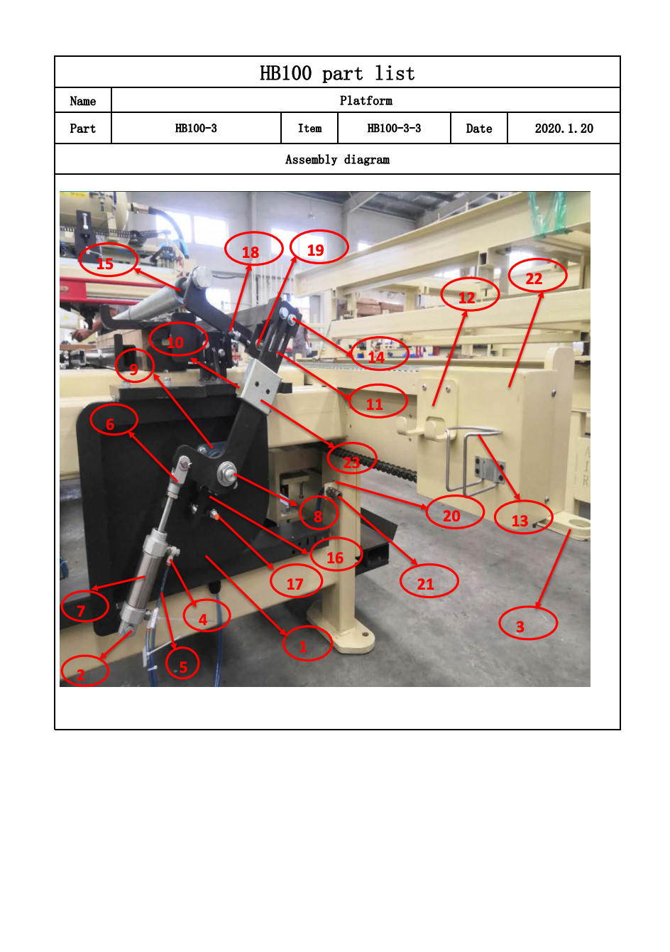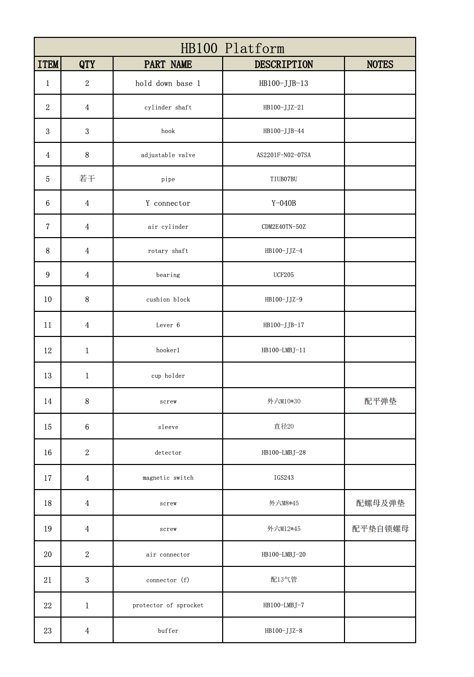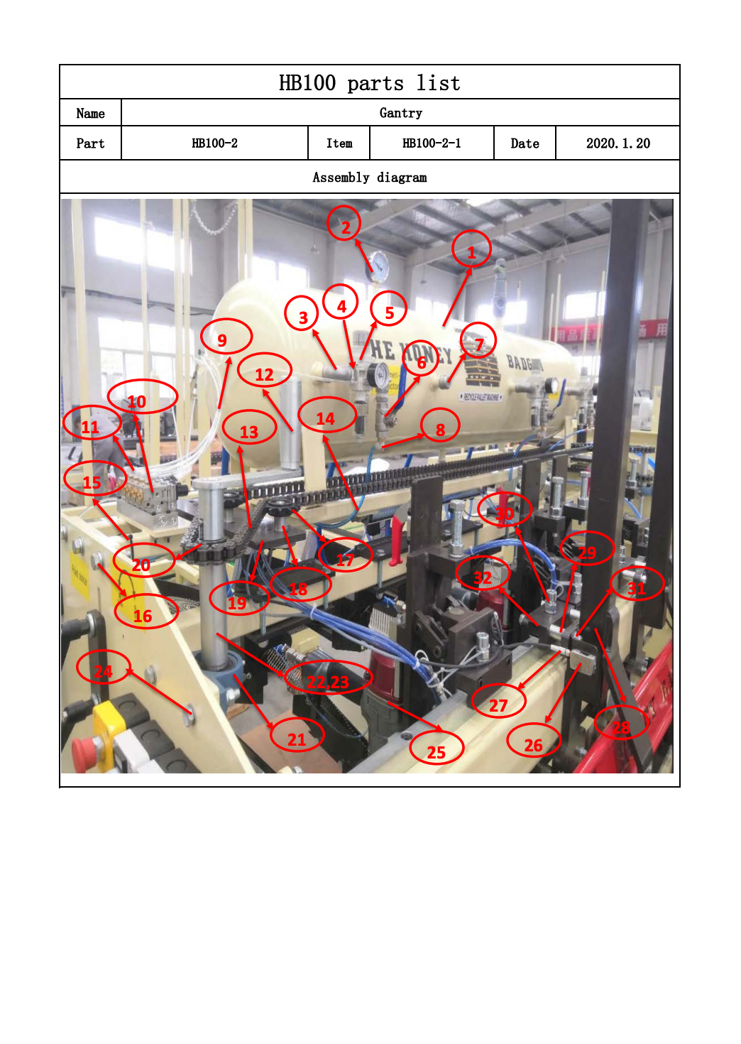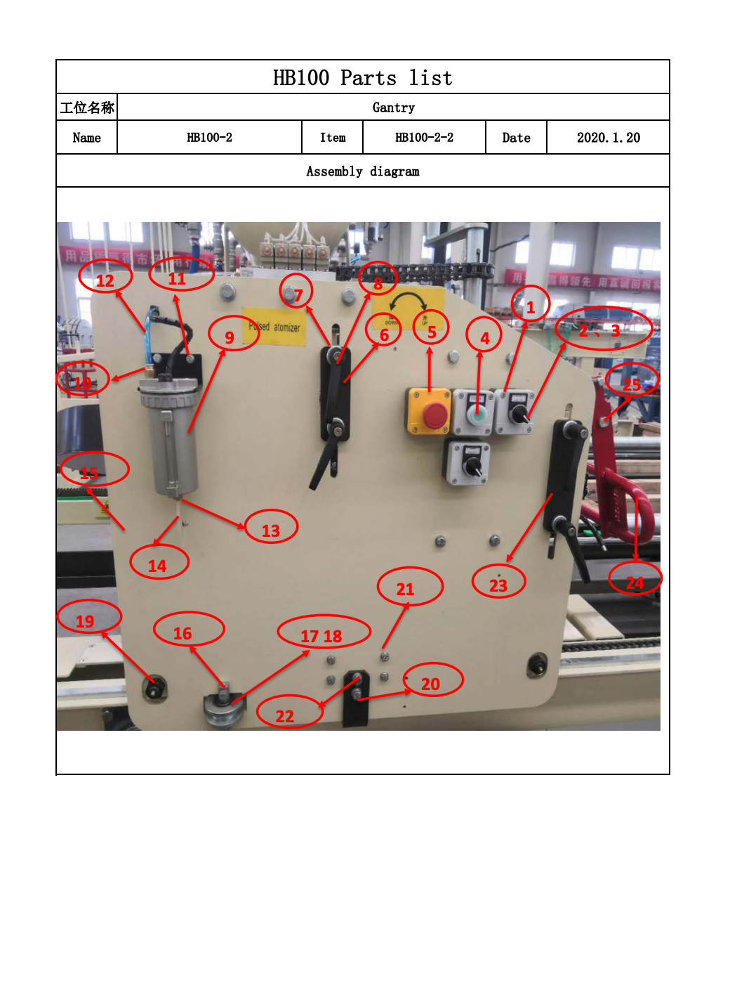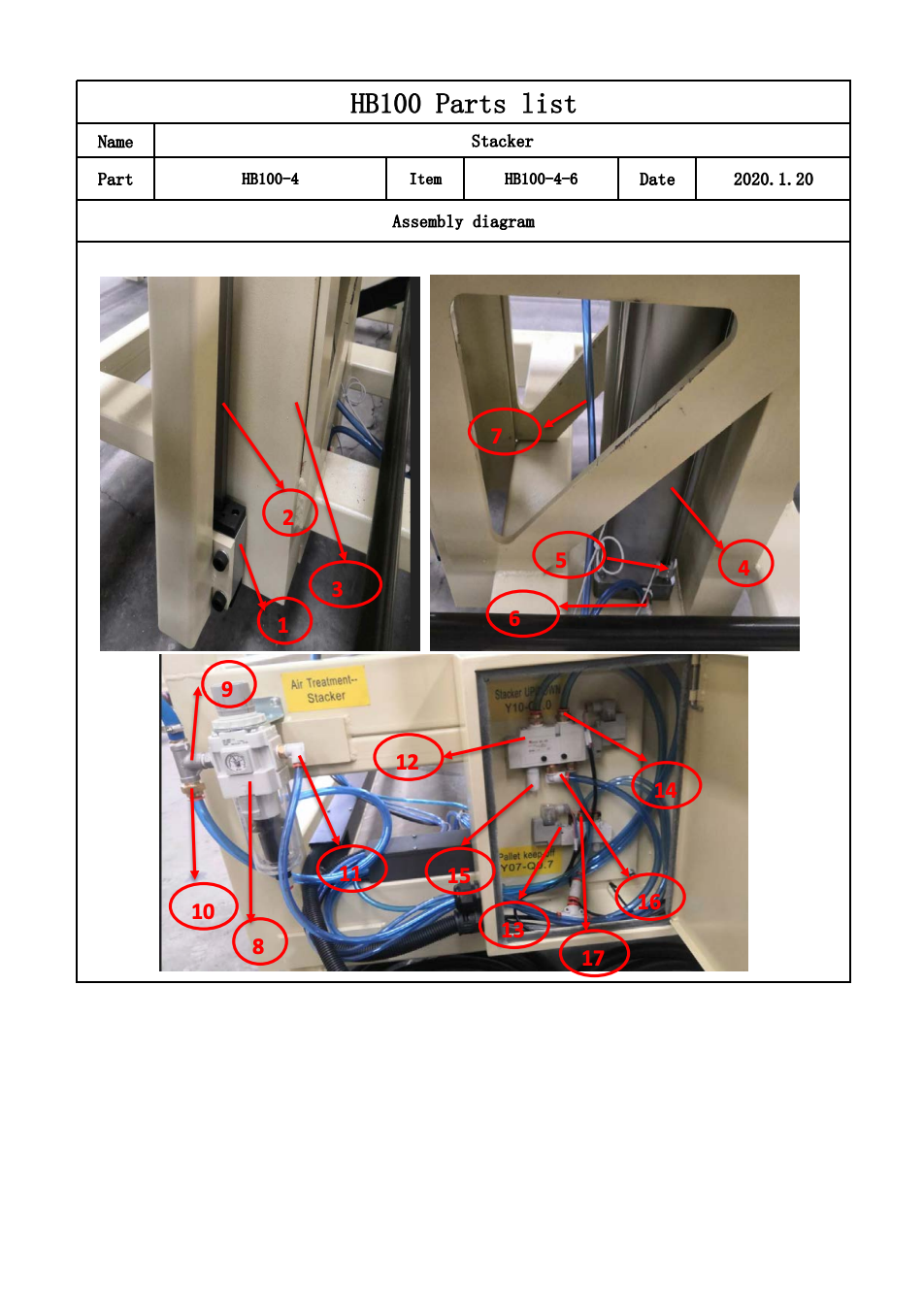 This document provides a detailed list of parts for Honey Badger pallet machine models manufactured before 2023.