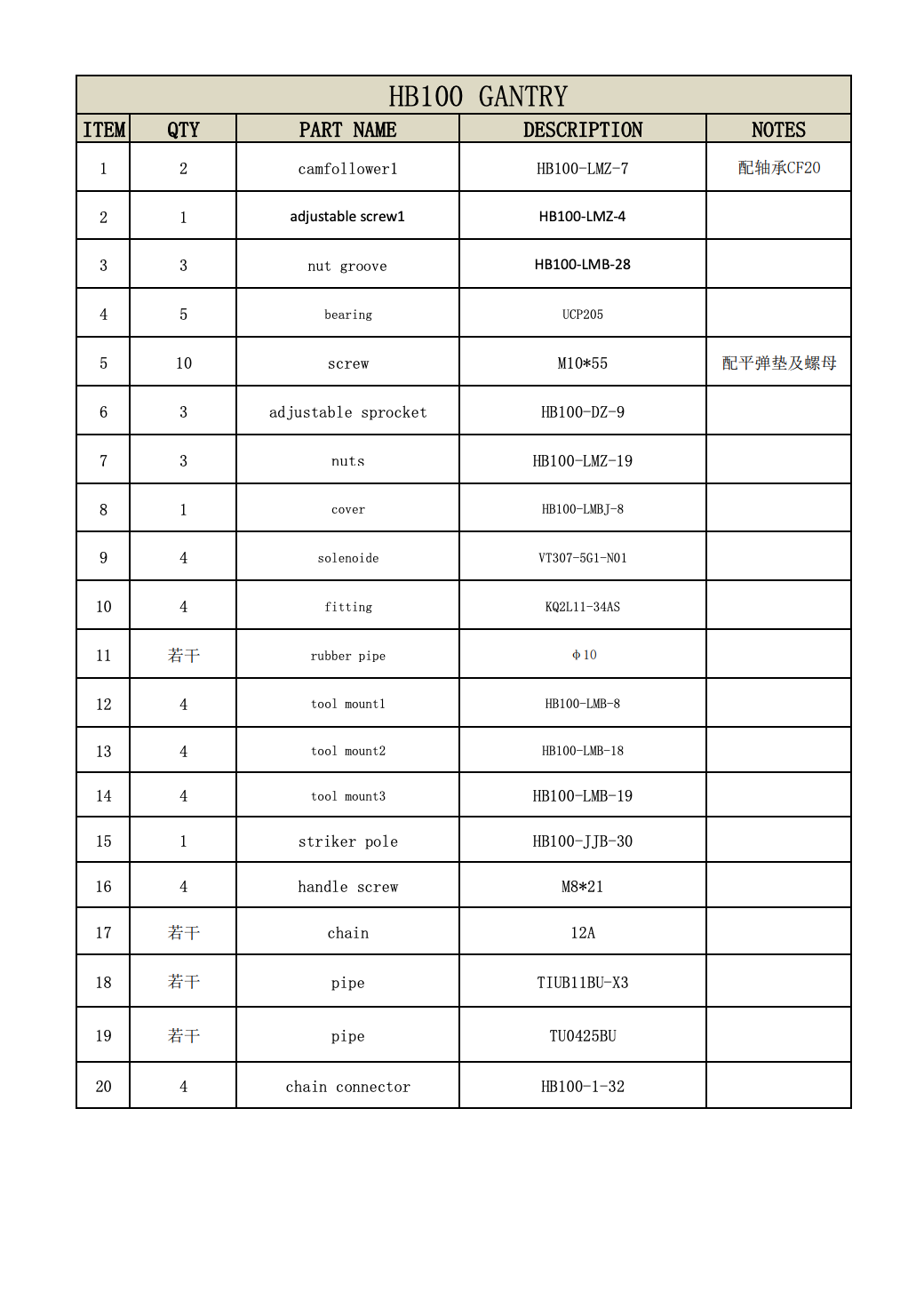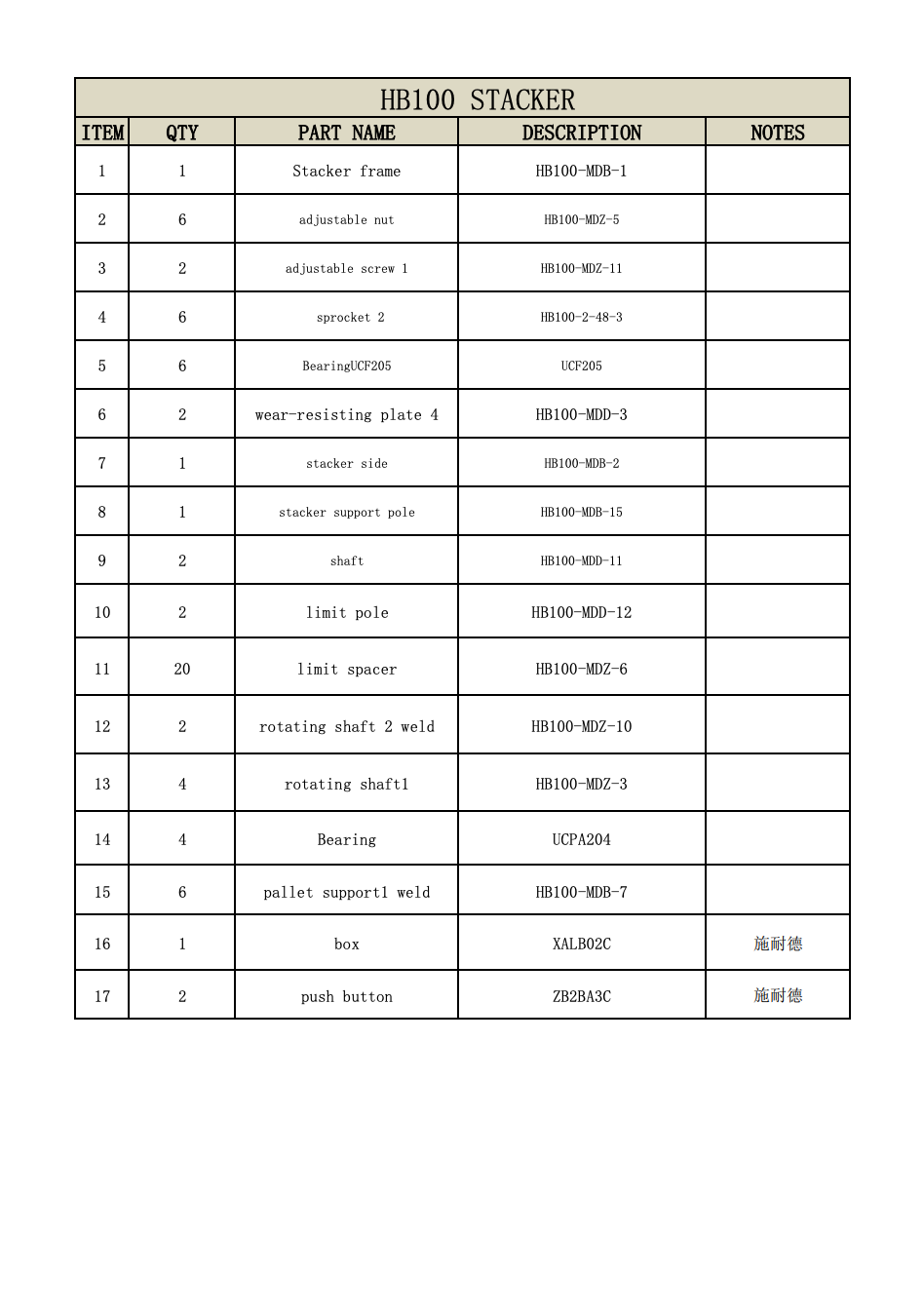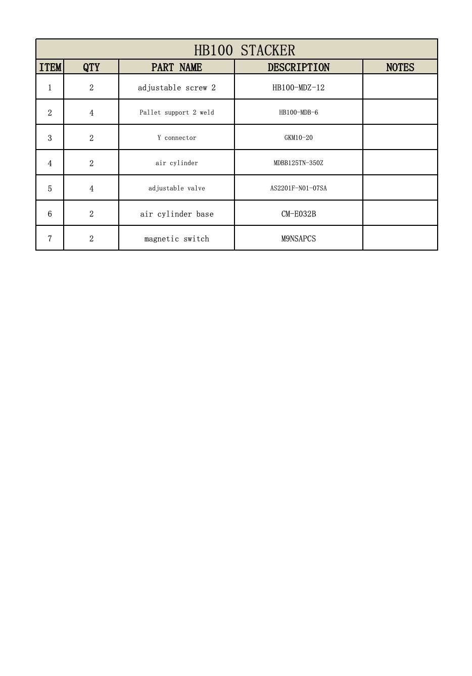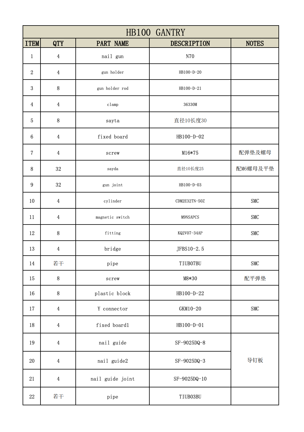 Parts List for Honey Badger Pallet Machine (Pre-2023 Models)